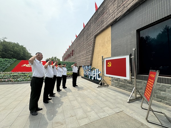 抵達(dá)冉莊地道戰(zhàn)紀(jì)念館后,黨員們面對鮮紅的黨旗,黨員們高舉右拳,重溫入黨誓詞?!拔抑驹讣尤胫袊伯a(chǎn)黨…… 隨時準(zhǔn)備為黨和人民犧牲一切,永不叛黨?!?鏗鏘有力的誓言在廣場上空回蕩,每一位黨員的心靈都受到了強(qiáng)烈震撼,更加堅(jiān)定了為共產(chǎn)主義事業(yè)奮斗終身的理想信念。
