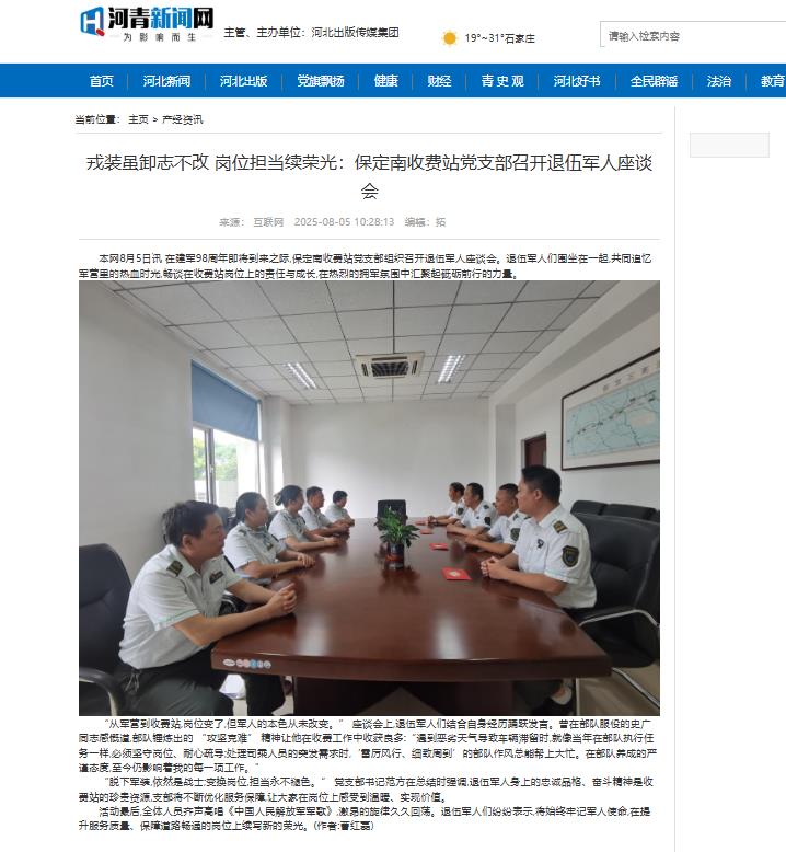 【河青新聞網(wǎng)】戎裝雖卸志不改 崗位擔(dān)當(dāng)續(xù)榮光:保定南收費站黨支部召開退伍軍人座談會