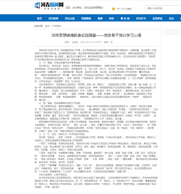 【河青新聞網(wǎng)】淬煉思想鑄魂躬身實(shí)踐強(qiáng)基——黨務(wù)骨干培訓(xùn)學(xué)習(xí)心得