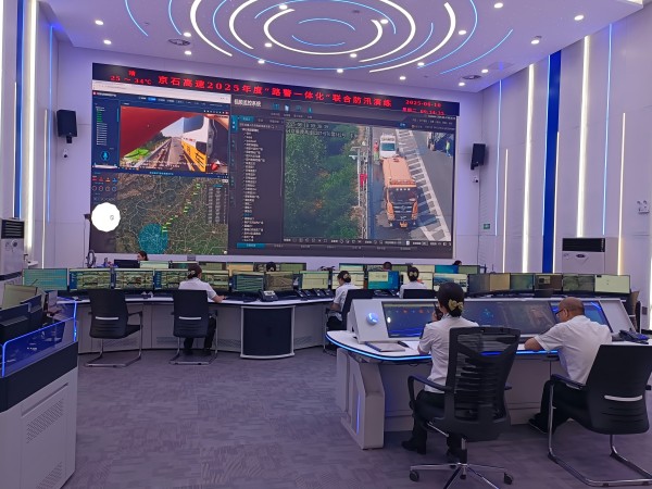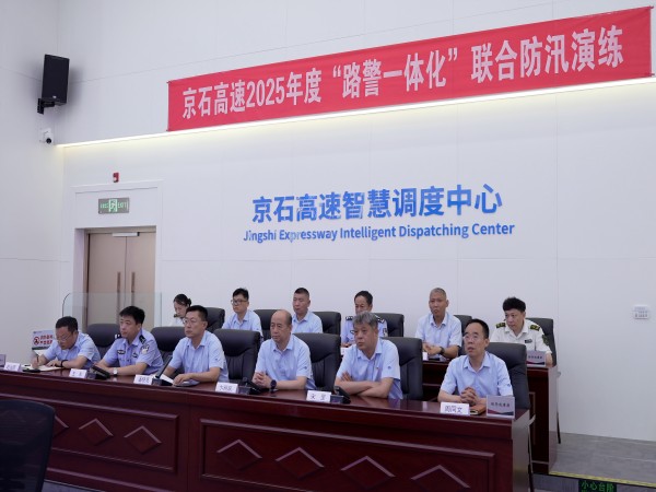 此次演練采取實戰(zhàn)聯(lián)合、多點同步的演練方式,同時進(jìn)行高速公路邊坡水毀、上游泄洪危及橋梁、收費站站區(qū)防汛三種突發(fā)事件的應(yīng)急演練,由智慧調(diào)度中心啟動聯(lián)合演練,路警聯(lián)合指揮中心實施指揮調(diào)度。