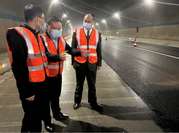 此次施工項(xiàng)目為隧道內(nèi)瀝青薄層罩面,考察人員在施工現(xiàn)場觀摩了瀝青薄層施工工藝流程,詢問了施工中的注意事項(xiàng)和細(xì)節(jié)問題,施工單位負(fù)責(zé)人現(xiàn)場進(jìn)行解答,并介紹了薄層罩面施工工藝的特色和優(yōu)點(diǎn)??疾烊藛T和施工單位技術(shù)人員對瀝青薄層罩面施工工藝特點(diǎn)、環(huán)保特性,質(zhì)量控制點(diǎn)、工期進(jìn)度、安全措施保障等方面進(jìn)行交流研討。