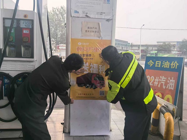 隨后,引流小組在海油加油站現(xiàn)場設(shè)立宣傳點(diǎn),向過往加油的貨車司機(jī)們積極宣傳“冀交萬里行”貨車營銷活動(dòng)。工作人員通過發(fā)放宣傳彩頁、現(xiàn)場講解、手把手指導(dǎo)注冊等方式,耐心向司機(jī)師傅們介紹小程序的注冊流程及使用方法,讓大家直觀感受到各項(xiàng)福利政策。同時(shí),引流小組還重點(diǎn)推廣了“空車配載”服務(wù),詳細(xì)解釋了該服務(wù)如何幫助司機(jī)快速匹配貨源、減少空駛里程、增加運(yùn)輸收入,實(shí)現(xiàn)“貨找車、車找貨”的高效匹配,真正做到“一站直達(dá)”的高效物流體驗(yàn)。