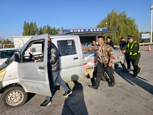 11月13日上午10時(shí)許,京石高速公路徐水收費(fèi)站出口外廣場,一位司機(jī)師傅駕駛的小型貨車突然熄火停止,多次啟動(dòng)未果,正在著急之時(shí),當(dāng)班收費(fèi)員第一時(shí)間察覺異常,一邊迅速安撫司機(jī)情緒,一邊呼叫當(dāng)班班長及同事支援。幾人隨即合力將貨車平穩(wěn)推至外廣場安全區(qū)域,并擺放好反光錐桶,提醒其注意安全。與此同時(shí),工作人員一邊幫忙打電話聯(lián)系附近車輛維修人員,一邊安撫司機(jī)的情緒,反復(fù)告知 “不用著急,維修師傅很快就到,不會耽誤太多時(shí)間”。
