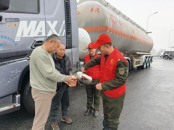 為打贏此次除雪保暢攻堅戰(zhàn),徐水站嚴格落實上級指示精神,制定了九條工作措施,全力保障道路安全通行。具體行動上,組織在站職工對收費車道、廣場等關鍵區(qū)域撒融雪劑,從源頭上防范路面結冰及車輛追尾等安全事故,迅速組織人力投入收費站口除雪作業(yè)。同時,徐水站在做好保暢通工作的同時做好延伸服務。將管控信息及時發(fā)布至貨車營銷群內,為過往司乘發(fā)放安全通行提示卡,安排專職人員協助300余名司乘注冊“限速通行”小程序順利通行;針對因封路滯留在收費廣場的司乘,工作人員主動送上23桶泡面、10壺熱水等應急物資,緩解司乘的焦躁情緒。