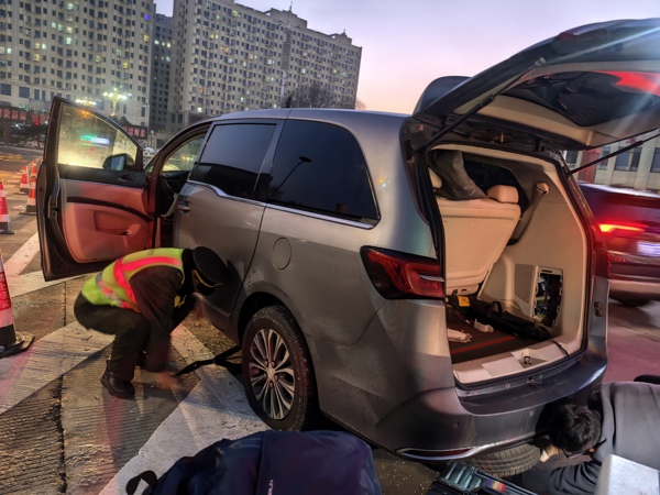 據(jù)了解,車上乘客是專程來涿州游玩的外地游客,本打算繼續(xù)行程,卻不料車輛突發(fā)故障,人生地不熟的他們一時間手足無措。收費員發(fā)現(xiàn)車輛停滯在路口后,立刻上前詢問情況,在得知是車胎漏氣的問題后,沒有絲毫猶豫,迅速取來維修工具,蹲在車旁開始幫忙更換輪胎。