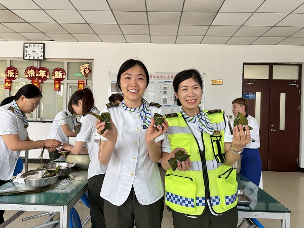 大鍋被這千姿百態(tài)的粽子堆滿了,這份沉甸甸的“滿”,像極了大家心中膨脹的情感,這層層疊疊的粽葉包裹著的是我們對(duì)工作順?biāo)斓钠诩?,?duì)司乘平安的祝福、對(duì)佳節(jié)圓滿的愿望,就讓這粽葉飄香,越過(guò)崗?fù)?,守護(hù)每一位司乘,為其保駕護(hù)航。
