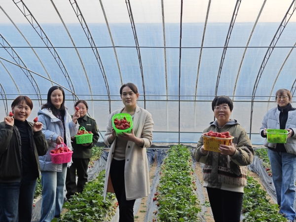 走進(jìn)草莓園,女職工們?nèi)宄扇?,提籃執(zhí)剪,在翠葉紅果間尋覓春日饋贈。活動現(xiàn)場架起文旅短視頻拍攝專區(qū),鏡頭記錄下她們俯身采摘的專注側(cè)影、發(fā)現(xiàn)飽滿果實時綻放的笑靨,以及竹籃漸滿時高舉成果的雀躍身影。紅莓映襯巾幗風(fēng)采,光影交織中,采摘野趣與高速沿線的田園風(fēng)光被剪輯成短旅推介視頻,通過企業(yè)抖音號“京石嬌顏有點甜”快速推送,吸引周邊群眾“跟著高速去采摘”,助農(nóng)便民,引流增收。