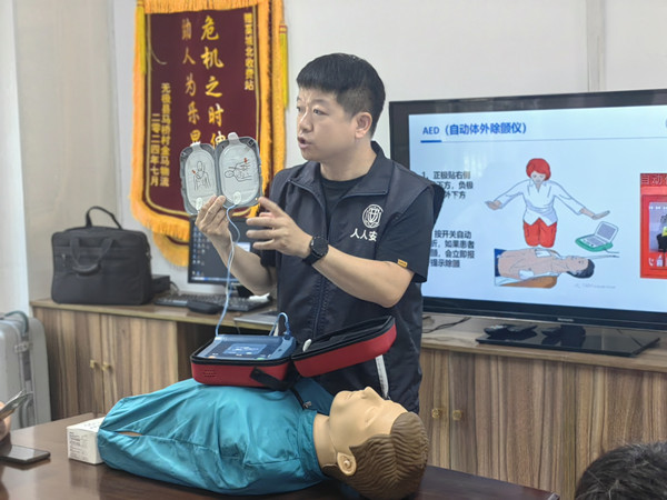 講座特邀安全健康教育網(wǎng)河北站宣教科科長(zhǎng)解云龍擔(dān)綱主講。不同于傳統(tǒng)講座的單向輸出,解科長(zhǎng)將智能教具與情景模擬深度融合,打造沉浸式學(xué)習(xí)場(chǎng)景?,F(xiàn)場(chǎng)救護(hù)與AED使用方法教學(xué)環(huán)節(jié)將講座推向高潮。解科長(zhǎng)利用專業(yè)模擬人教具和自動(dòng)體外除顫器(AED)設(shè)備,通過“理論講解+分步演示+實(shí)操訓(xùn)練”三位一體的教學(xué)模式,詳細(xì)介紹心肺復(fù)蘇的操作流程與關(guān)鍵要點(diǎn)。他強(qiáng)調(diào),在心臟驟停的黃金四分鐘內(nèi),及時(shí)有效的心肺復(fù)蘇和AED使用是挽救生命的關(guān)鍵。職工們分組進(jìn)行實(shí)踐操作,解科長(zhǎng)逐一指導(dǎo),糾正按壓深度、頻率及AED電極片粘貼位置等細(xì)節(jié)問題,確保每個(gè)人都能熟練掌握這兩項(xiàng)“救命技能”。“以前覺得急救很復(fù)雜,今天親身體驗(yàn)后,心里更有底氣了,以后遇到突發(fā)情況也知道該怎么做了?!币晃粎⑴c實(shí)操的職工感慨道。