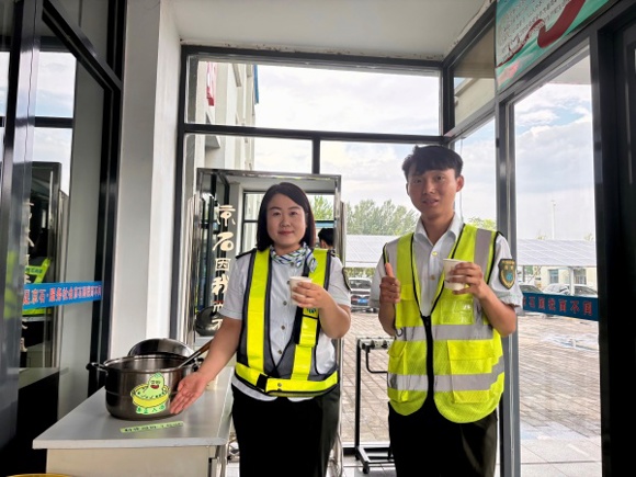 除了發(fā)放防暑物資,定興站食堂也積極行動(dòng)起來,為員工們準(zhǔn)備了清涼解暑的綠豆湯和清甜可口的西瓜。在高溫環(huán)境下工作后,喝上一碗綠豆湯,吃上一塊西瓜,瞬間驅(qū)散了暑氣,讓員工們倍感舒適。同時(shí),為應(yīng)對(duì)可能出現(xiàn)的中暑情況,工會(huì)還購買了藿香正氣水等防暑藥品,放置在各工作場所,方便員工隨時(shí)取用。