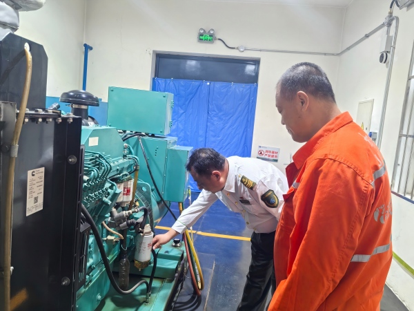 首先檢查柴油發(fā)電機房。發(fā)電機作為收費站在突發(fā)停電情況下保障正常運營的關(guān)鍵設(shè)備,其運行狀況至關(guān)重要。段青松副站長和小組成員仔細檢查了發(fā)電機的狀態(tài),查看是否存漏油、漏防凍液現(xiàn)象等情況。同時對柴油儲備情況進行了檢查,確保在節(jié)日期間有足夠的燃料供應。此外還重點檢查了發(fā)電機房的通風情況,保證良好的通風條件。