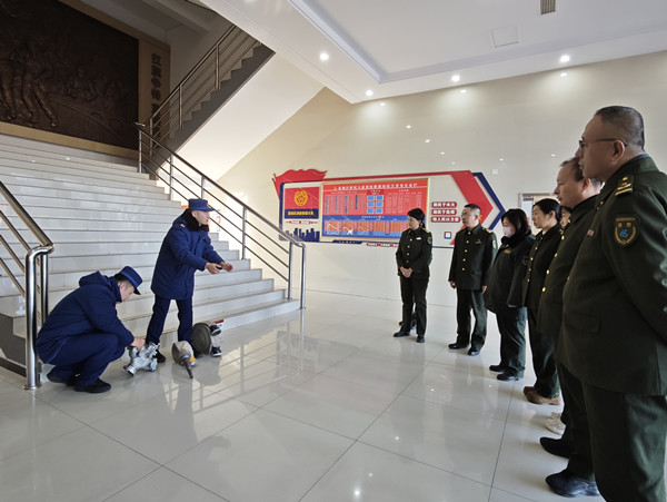在消防員的帶領(lǐng)下,員工們先后參觀了消防指揮中心、宿舍、消防車(chē)、器材裝備、黨團(tuán)活動(dòng)室等區(qū)域。從“威武”的水罐消防車(chē)、搶險(xiǎn)救援車(chē)到各類(lèi)破拆工具、防毒面具、隔熱服等專(zhuān)業(yè)裝備,消防員逐一講解其功能用途、操作方法及維護(hù)保養(yǎng)要點(diǎn),并重點(diǎn)演示了空氣呼吸器佩戴、滅火器規(guī)范使用、消火栓、消防水帶等基本器材的操作要求和使用方法。大家聽(tīng)得認(rèn)真、看得仔細(xì),不時(shí)提問(wèn)交流,現(xiàn)場(chǎng)學(xué)習(xí)氛圍濃厚。